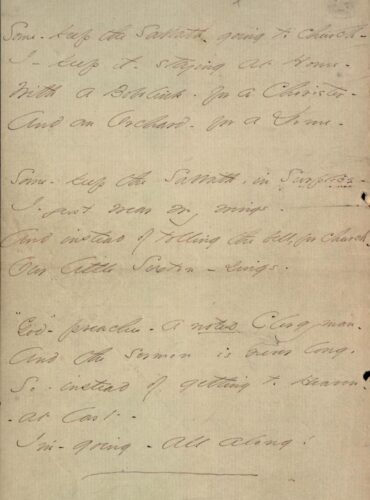 Some keep the Sabbath ← Previous Next → Poem manuscript written in script in ink on embossed stationery. Two holes are punched on the right edge of the sheet.